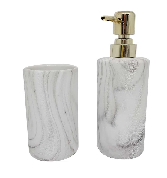 Kit Banheiro com Porta Sabonete e Porta Escova Marmorizado 2 Peças – Cor Amarelo 🛁✨
